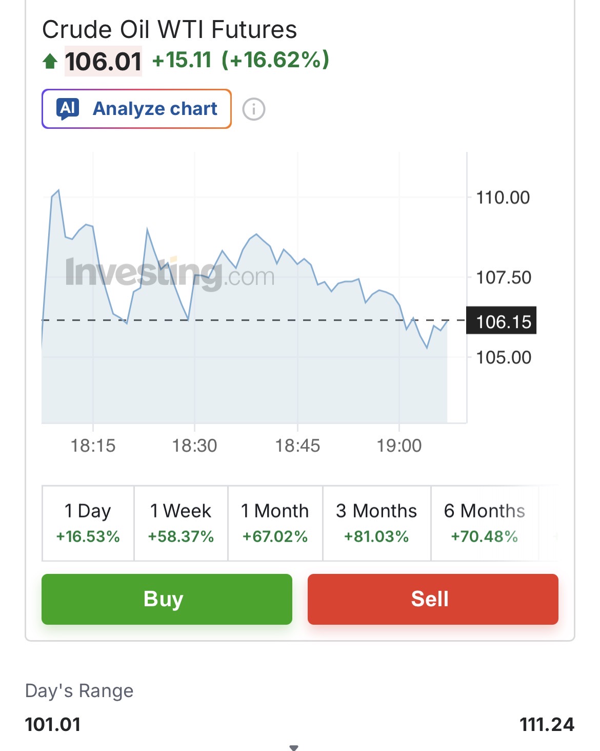 What will be the highest price of crude oil in 2026? (According to investing.com)