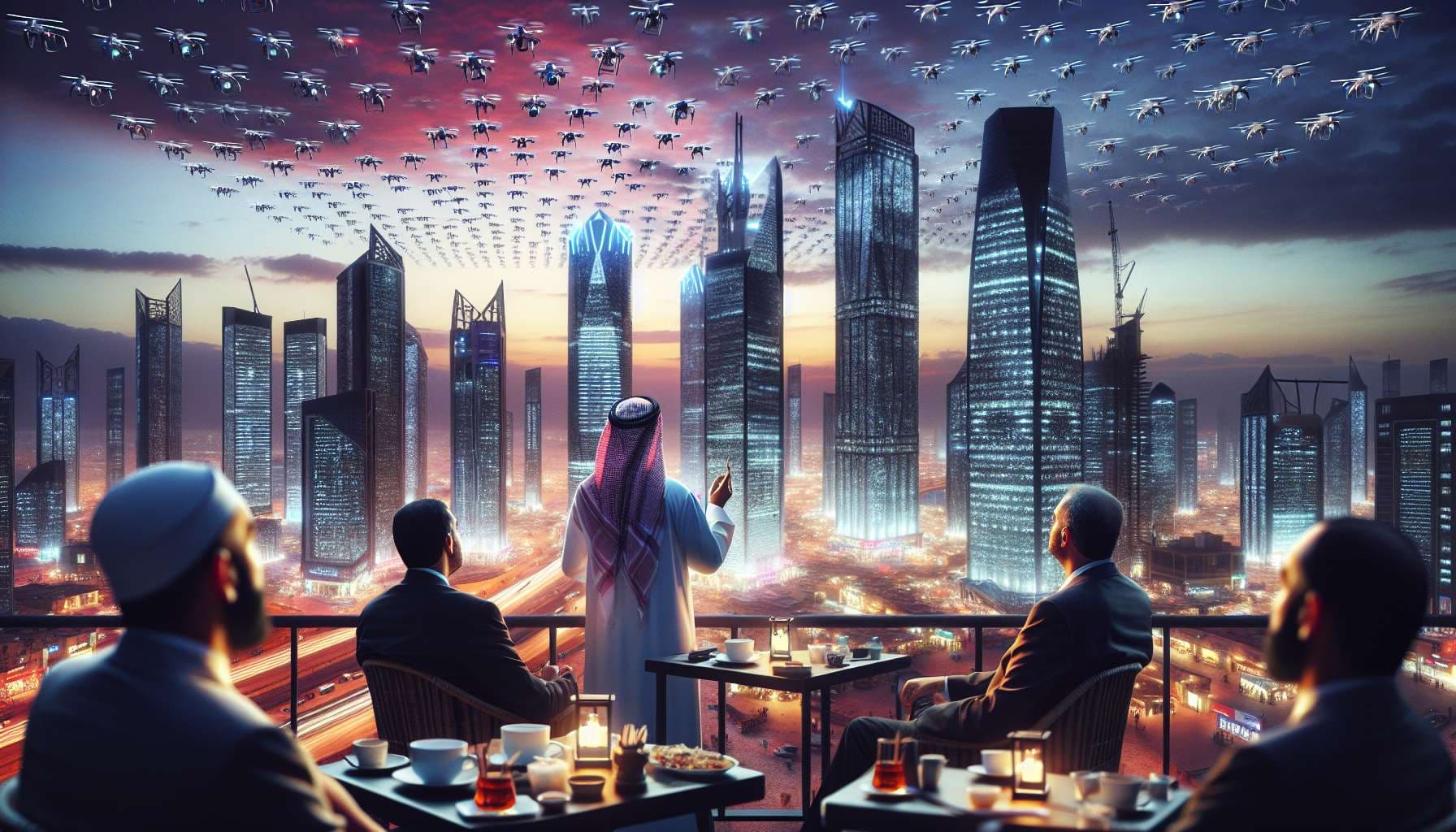 Inspired by the Kim Stanley Robinson novel "The Ministry for the Future". Robinson describes drone swarms as follows: